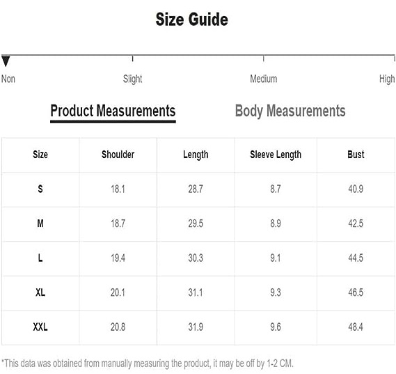• Bust Size: (Small) 40.9 inch,(Medium) 42.5 inch, (Large) 44.5 inch, (X-Large) 46.5 inch, (XX-Large) 48.4 inch.