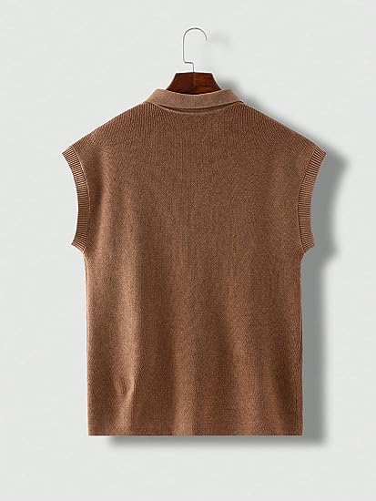 - Design: Button front, collar, polo neck, sleeveless, rib knit, solid color, regular fit, casual style.